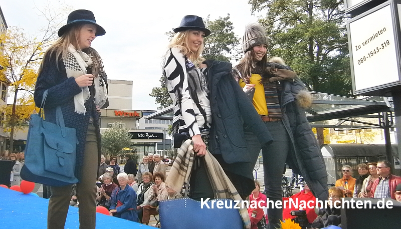 Tapfer haben sich die jungen Frauen, die auf dem Laufsteg agierten, trotz vereinzelt heftiger Herbstwinde gehalten und gekonnt Dekostoffe, Mode, Brillen und Schmuck präsentiert. Auch die Frisuren hielten stand.