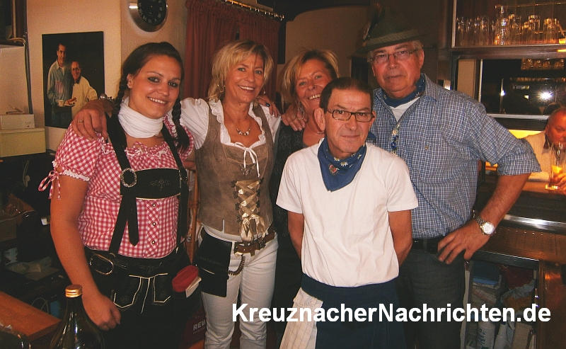 BAD KREUZNACH (06.10.12). Es war heute so richtig was los, auf beiden Seiten des Salinenplatzes. So lud Jens Holste zum alljährlichen, traditionellen Oktoberfest in sein „LE BISTRO“ ein, wo es bei bayerischem Bier mit Weißwurst und Brezn richtig zünftig zuging. Da störten auch bei strahlend blauem Himmel und sehr milden Temperaturen auch so manche Herbstböe nicht. Am späten Nachmittag allerdings fing es zwischendurch an zu regnen, was die fröhliche Stimmung am Salinenbrunnen nicht trübte. Da wurde bei Live-Musik vom Alleinunterhalter im Bistro geschunkelt.