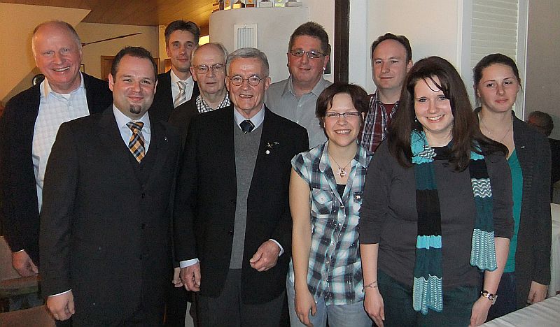 Mit dem Fahrtenabzeichen wurden geehrt (von links): Günter Washeim, 2. stellvertretende Vorsitzende Thilo Coblenzer, Präsident Benjamin Gozdowski, Dr. Christian Schröder, Ehrenpräsident Reiner Freund, Christoph Senske, Melanie Grimm, Daniel Hassinger, Jennifer Karst, Linda Manhart.