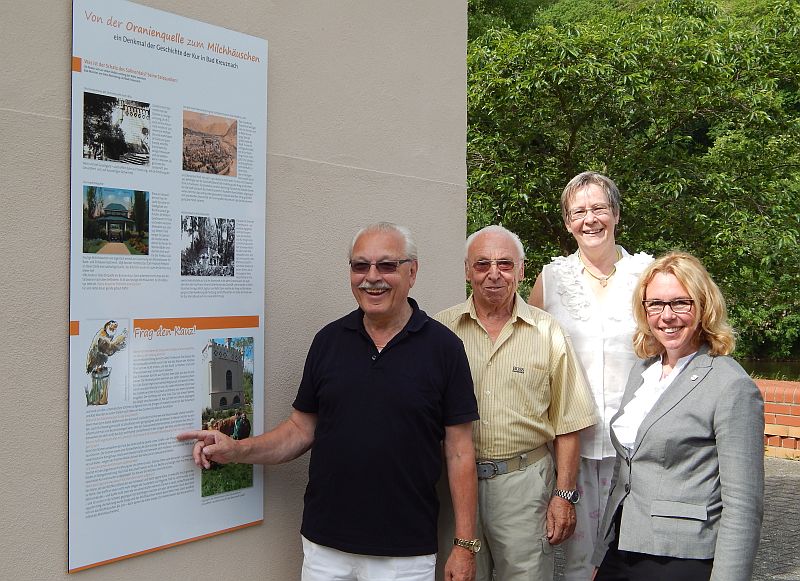 Das „Milchhäuschen“ hingegen behielt seinen Namen. Seine eigentümliche Architektur – wie die Zinne einer Burg – inspirierte Helga Baumann, in der Geschichte des Häuschens nachzuforschen. Ihre Idee, in Erinnerung an die Kreuznacher Milchkur ein Fest zu feiern, fand tatkräftige Unterstützung durch Ronja und Alexander Jacob, die beide für die Organisation, Programm und den sicheren Ablauf des Festes sorgen. So wird Kuh Kati von einem Bauernhof aus der Umgebung des Hofgutes Rheingrafenstein „engagiert“. Im Terminkalender der Stadt Bad Kreuznach ist das Fest ebenfalls sehr willkommen, Dr. Michael Vesper, Geschäftsführer der Gesundheits- und Tourismus-GmbH und Heimatforscher, unterstützt die schöne Idee auch aus eigenem (Forscher-)interesse und liefert Informationen zur Stadthistorie. So werden an der weißen Außenwand – das Milchhäuschen ist leider nicht begehbar – alte Schwarz-Weiß-Aufnahmen aus Zeiten des konzessionierten Milchverkaufs ausgestellt.