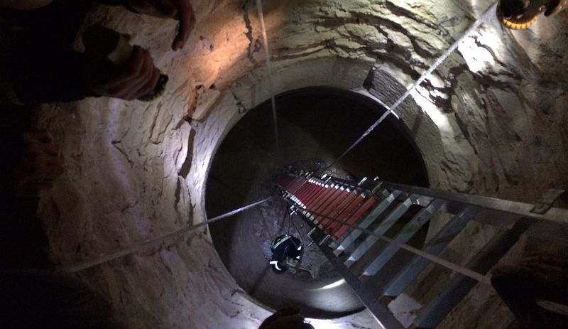Nach eineinhalb Kilometern Fußmarsch wurden die Leitern zusammengesteckt und an Seilen in die Tiefe herabgelassen