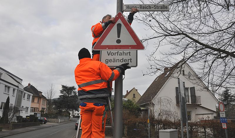 Im Neufelder Weg wurde nun die Beschilderung angepasst: „Achtung, Vorfahrt geändert“, mahnen nun neue Schilder in der Straße zu umsichtigem Fahren.