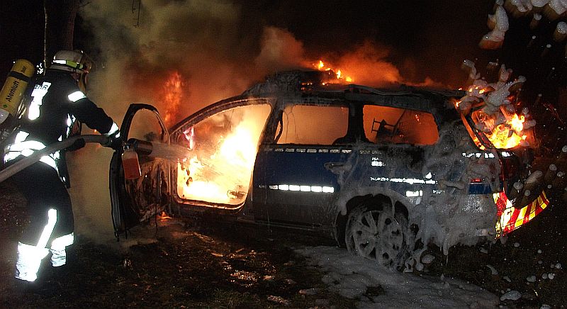 Das Einsatzfahrzeug stand bei Ankunft der Feuerwehr in Vollbrand.