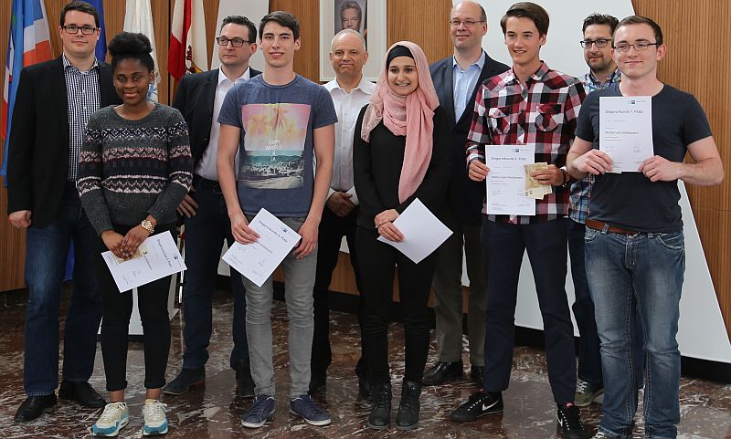 David Klünspies (Verband der Wirtschaftsjunioren), Denise Größl, Mirko Syré (Sprecher der Wirtschaftsjunioren), Valentin Barth, Dr. Bottke, Ayah Aburaghif, Jörg Lenger (Geschäftsführer der Geschäftsstelle der IHK in Bad Kreuznach), Florian Kehrein, Marco Mädler (von den Wirtschaftsjunioren) und Tim Ingenbrand.