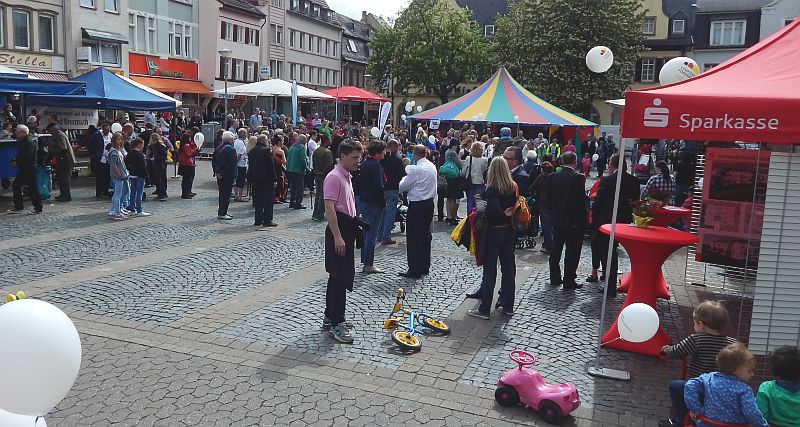 Dort präsentierten sich Aktive Stadt, Altstadtverein, BKEG, GEWOBAU, WohnArt, Klein Venedig-Bohéme und Soziale Stadt Pariser Viertel und Tilgesbrunnen mit ihren Schautafeln, auch die Sparkasse Rhein-Nahe informierte mit einem Stand auf dem Kornmarkt.