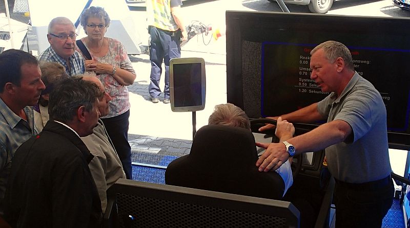 Was jedoch passiert, wenn ein Lkw umkippt oder mit Wucht auf ein Hindernis auffährt, konnten die Berufskraftfahrer nun am eigenen Leib ausprobieren.