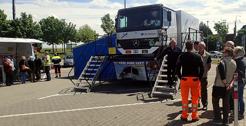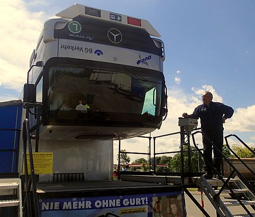 Besser ist es … angeschnallt zu sein! Das konnten LKW-Fahrer im Überschlagsimulator erfahren.