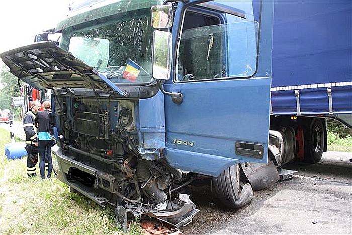 Hier kollidierte der Pkw frontal mit einem entgegenkommenden 40-Tonner-Sattelzug, schleuderte von der Fahrbahn und kam im Straßengraben zu liegen.