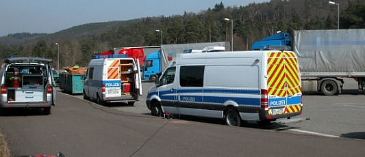 Am gestrigen Vormittag (17.06.15) kontrollierte die Polizei an der A 8 auf dem Parkplatz „Kornberg“ im Bereich Walshausen den in Richtung Pirmasens fließenden Verkehr und am Nachmittag an der A 6, Abfahrt Kaiserslautern-Ost, auf dem Parkplatz „Schweinsdell“.