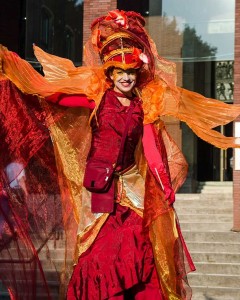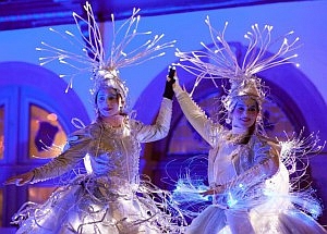 Stelzenläufer, Clowns und Akrobaten verführen die Familien in eine Welt aus Zauber und Magie.