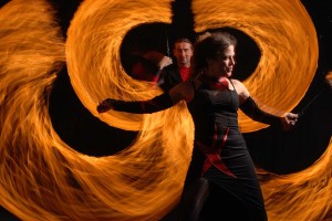 Leuchtende Stelzenläufer und verschiedenen Feuershows von den Feuertänzern verleihen dem Eifelpark bei Nacht eine unvergleichliche Atmosphäre.