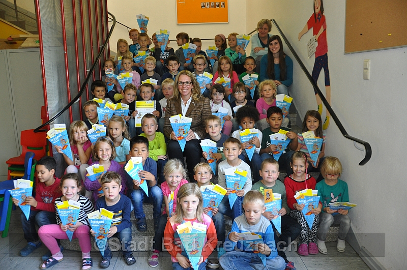 kh lesetüten Veröffentlicht 15. September 2015 am 800 × 531 in 15.09.15 – Erstklässler freuten sich über Lesetüte Foto: Kleine Schultüten brachten Oberbürgermeisterin Dr. Heike Kaster-Meurer, Bibliothekarin Katrin Wietheger und die Auszubildende Eileen Presser mit.