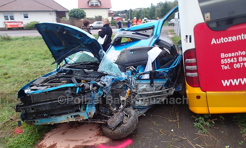 BAD KREUZNACH. Am heutigen Mittwoch (23.09.15) war gegen 08.40 Uhr ein mit zwei Fahrgästen besetzter Linienbus der Kreuznacher Verkehrsgesellschaft auf der B 420, aus Richtung Frei-Laubersheim kommend, in Richtung Alsenz unterwegs.