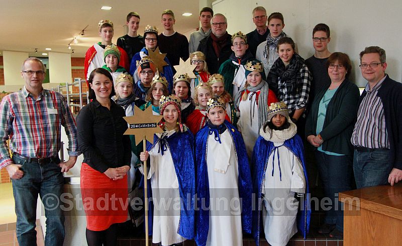 Im Ingelheimer Rathaus sangen rund 20 Sternsänger zur Begrüßung das Lied „Stern über Bethlehem“. Eveline Breyer zeigte sich erfreut über das Engagement der Kinder und überreichte den Sternsingern einen Obolus für die Aktion.