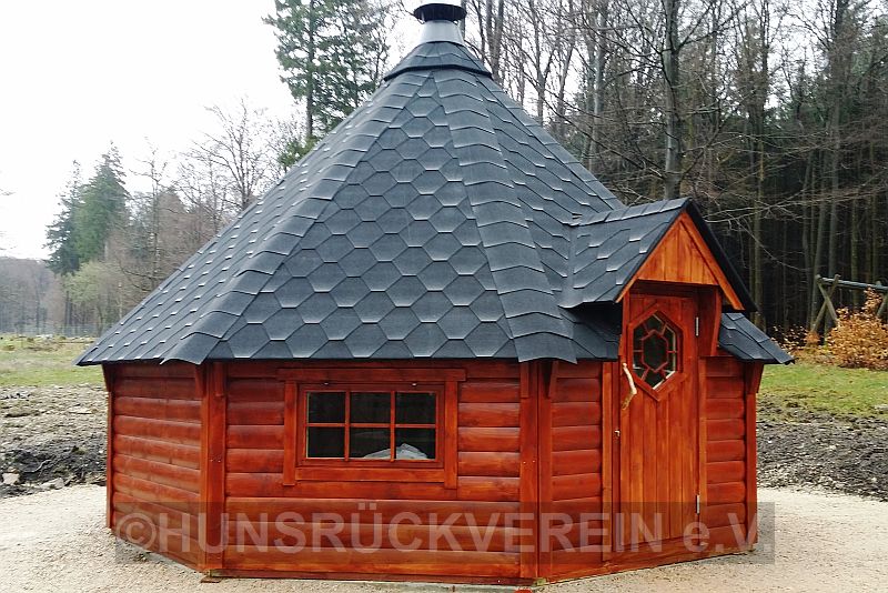 Diese Grillkota, die auf einer Lichtung am Ende des kleinen Rundweges, gegenüber der Wolfsblut Wolfslandschaft aufgestellt wird, bietet Platz für mehr als 20 Personen.